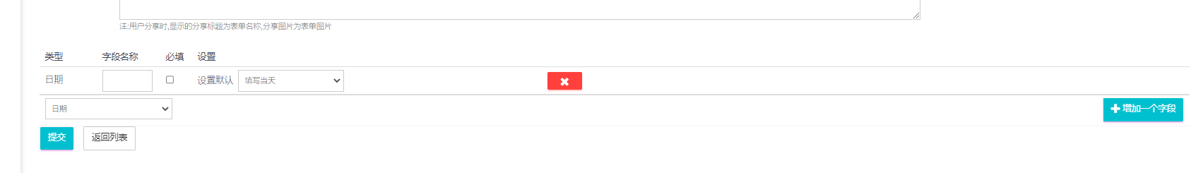 注:用户分享时,显示的分享标题为表单名称,分享图片为表单图片