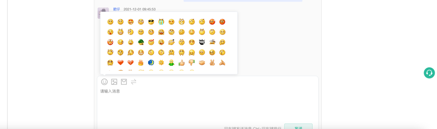 3区域:输入区域,输入框支持输入文字信息、上方支持插入表情、图片、商品、转接客服等操作;输入完成后可通过回车键快速发送消息,符合日常办公通讯软件使用习惯;