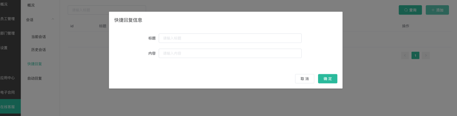 这里的快捷回复是指客服的个人快捷回复,添加后在客服会话窗口可通过快捷回复快速回复可以;