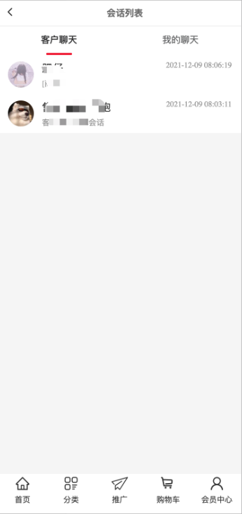 客服人员在手机端-会员中心-客服入口,可以查看会话列表,清楚进行回复。